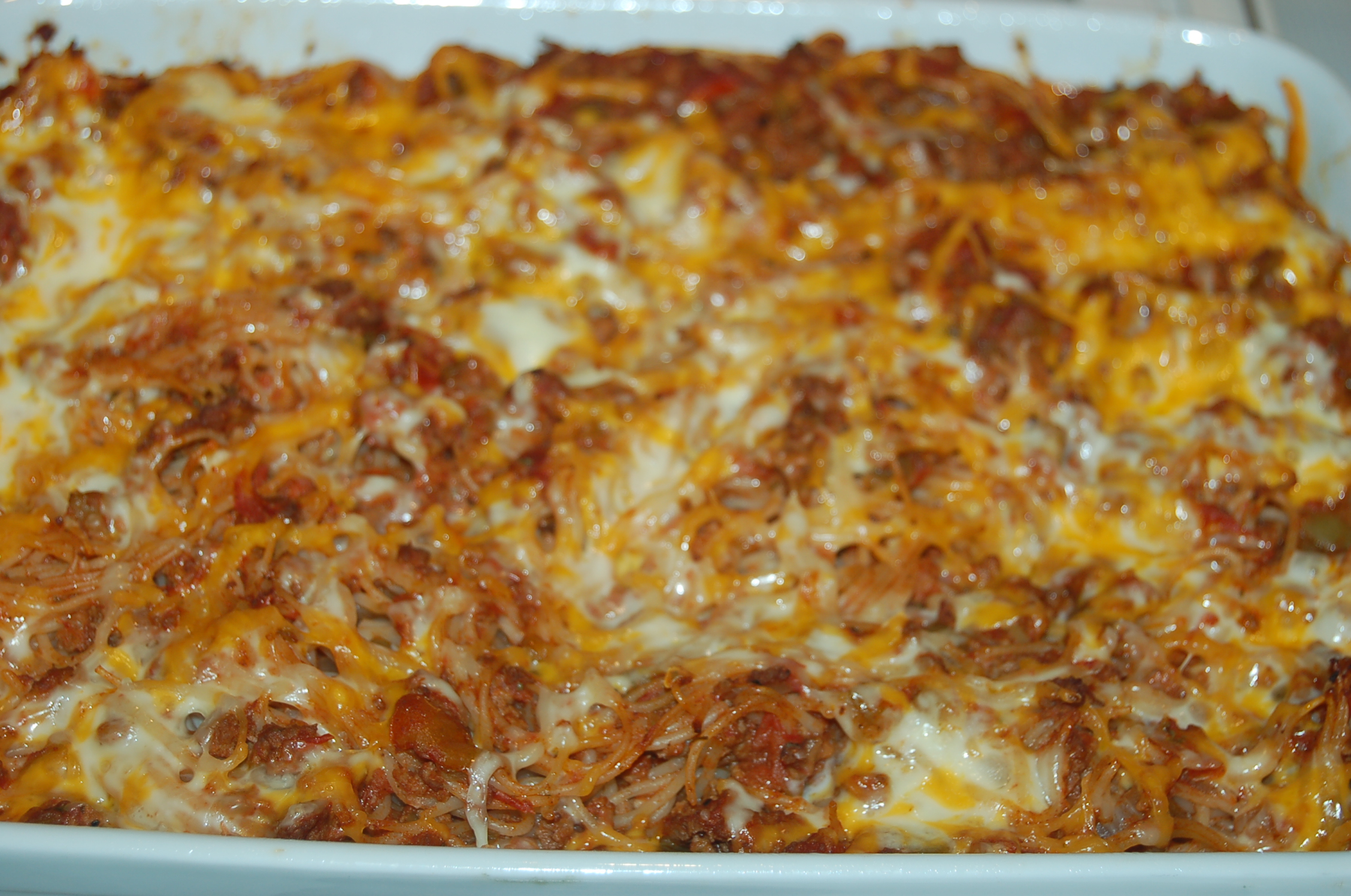 I was sitting in physical therapy having my elbow treated with ice and a medicated therapy that involves electroshock (I know, right?) and flipping through a food magazine. My therapist, Tammy, walked by as I was looking at a photograph of some baked spaghetti.